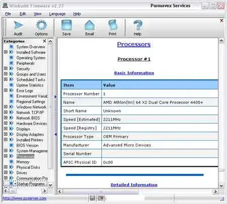 البرامج المحملة بأرقامها وأجيالهاWinaudit ومن بين المعلومات المتاحة و التي يوفرها