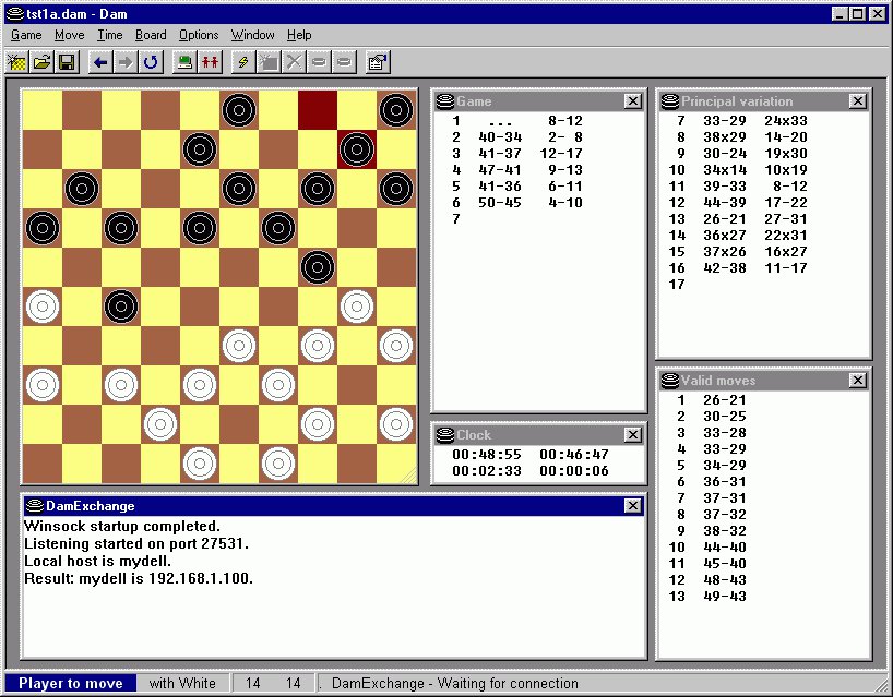 Désirez- vous participer à un jeu de combinaisons avec une liberté de choix de votre adversaire : soit contre ordinateur ou quelqu’un d’autre : dames 2.2.7 un jeu qui se pratique à deux sur un damier avec des points noirs et blancs, et qui consiste à prendre tous les poins de l’adversaire, vous pouvais avoir des poins doublé c’est- à- dire recouvert et avancer jusqu’aux dernière cases de l’autre coté.